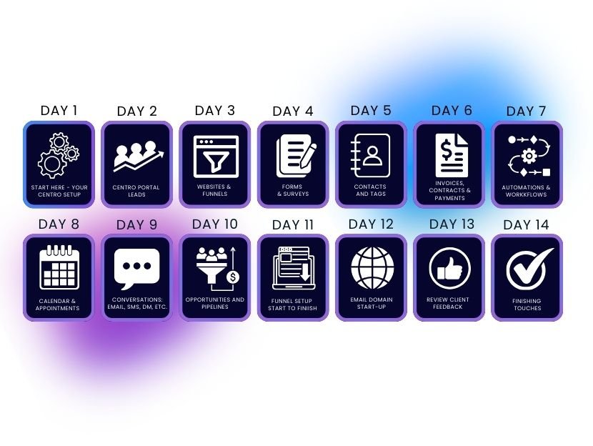 Getting started with CENTRO™ is quick and straightforward. Once you sign up, you can immediately begin setting up your account, schedule your tech call, and then your training call. Most users are fully set up on the same day and can start sending campaigns as soon as their training is complete. CENTRO™ is designed to be fast, simple, and ready to use right away.